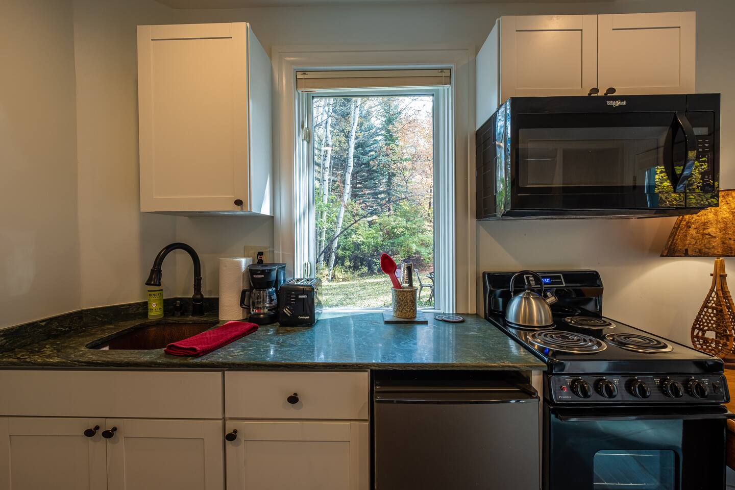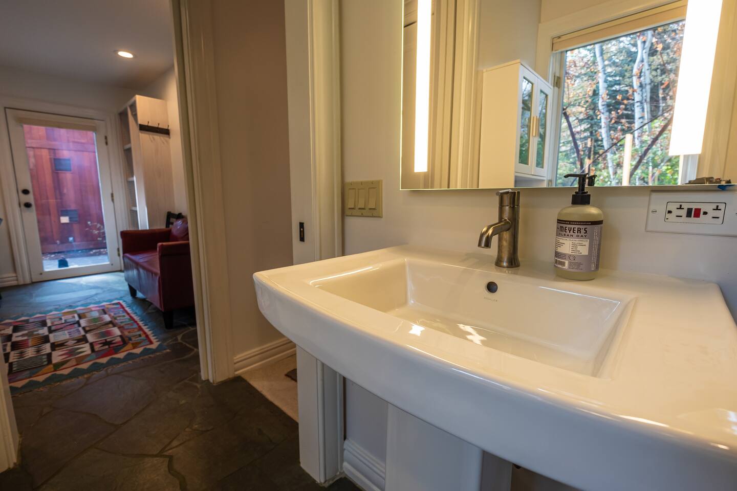 This beautiful space is all hand-built and hand-finished by a skilled local craftsman. The attention to detail is stunning and you'll find that the place is fully stocked with at least as many amenities as you'd find in a modern hotel. Radiant in-floor heating keeps your feet warm and toasty in the winter months while ample windows and natural light let you enjoy the beautiful forested location.